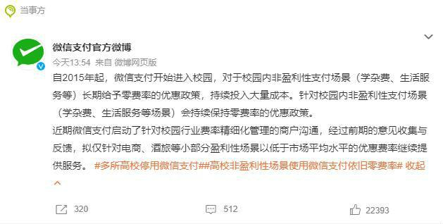 多高校因手续费停用微信支付!腾讯致歉:此次调整过于简单粗暴引起误解