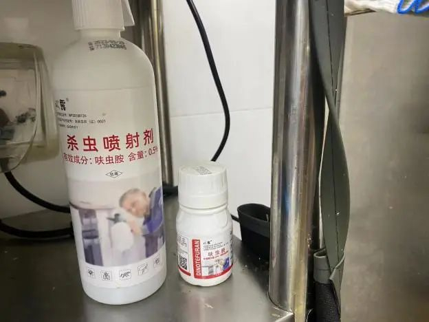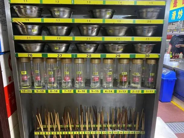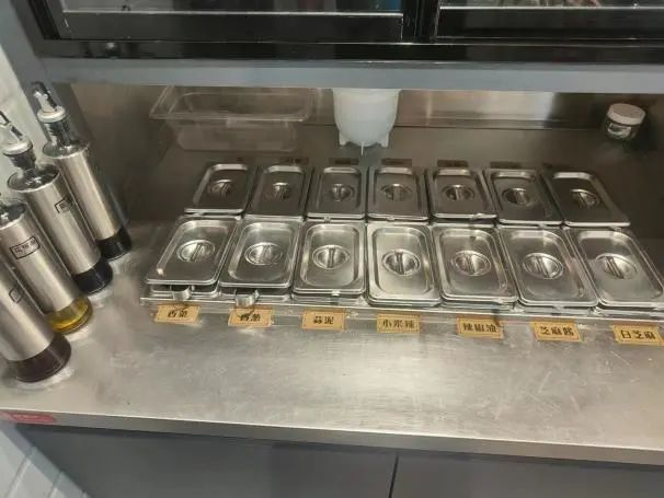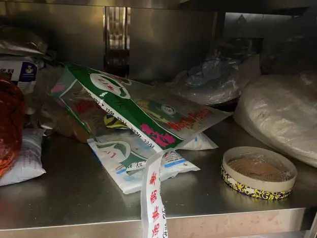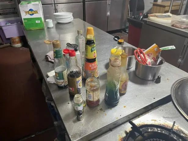 1、操作台杂乱、调味品打开后未加盖,用饮料瓶分装调味料。