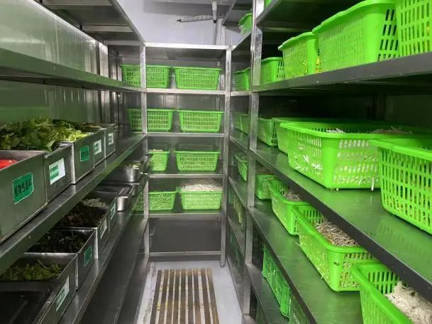 3、清洗后蔬菜存放于专用冷藏库,并按色标管理。