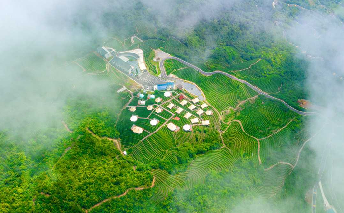 6月29日,湖北省兴山县峡口镇“岩上茶居”点缀在云雾缭绕绿色茶园中。兴山县地处三峡库区,立足当地资源,以全域旅游为抓手着力打造生态旅游特色的茶旅综合体,以“茶旅融合”带动产业增效,助力村民增收。