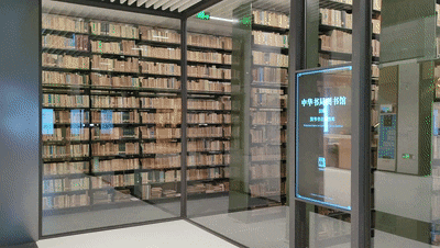 一楼展出中华书局图书馆旧藏,创新性地复原、展示了中华书局的旧有图书馆。上海辞书出版社图书馆(原中华书局图书馆)藏书是上海出版系统的重要历史文献资源,是全国出版系统现存的最大单体文物,也是百年前上海出版人举办公共图书馆、昌明教育、救亡图存的物证。一楼用透明书库展示的17万册藏书使用原图书分类法和原书架,复原上架中华书局旧藏。这些藏书中,既有《新青年》等红色文献,又有康有为藏清雍正四年铜活字《古今图书集成》影印底本近800册。书库外有多媒体数字屏可供参观者查询书目。