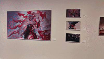 伴随着开馆,在五楼临展厅推出由市委宣传部网络出版处和中国近现代新闻出版博物馆共同主办的“想象直达生活——首届网络游戏视觉艺术展”。参展单位包括腾讯游戏、网易游戏、米哈游、盛趣游戏、完美世界、巨人网络、恺英网络、哔哩哔哩、蛮啾网络、波克城市、拳头游戏、莉莉丝游戏、叠纸游戏、椰岛游戏、鹰角网络、游族网络等17家单位。从“游戏+艺术”“游戏+音乐”“游戏+非遗”“游戏+科普”“数字+党建”“游戏道具”等多板块,近距离展示网络游戏精美原画,沉浸式展示游戏影音。