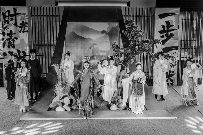 近日,山西传媒学院在太原市万柏林区万象城下沉广场举办了“汉服印象”传统服饰教学成果展演。活动现场,35名来自该校的大二学生,均身着汉、唐、宋、明等朝代的服饰,向现场的观众展示了60套独具特色的原创设计作品,并进行了沉浸式国风走秀教学成果展演和气氛热烈的古诗词问答互动节目。