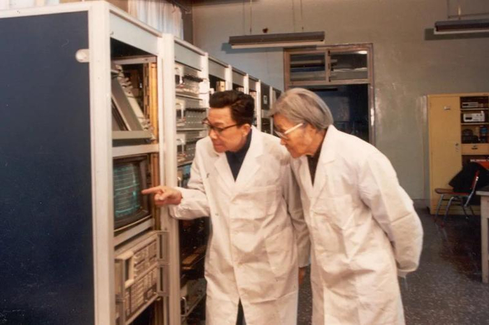 王承书与科研人员在实验室