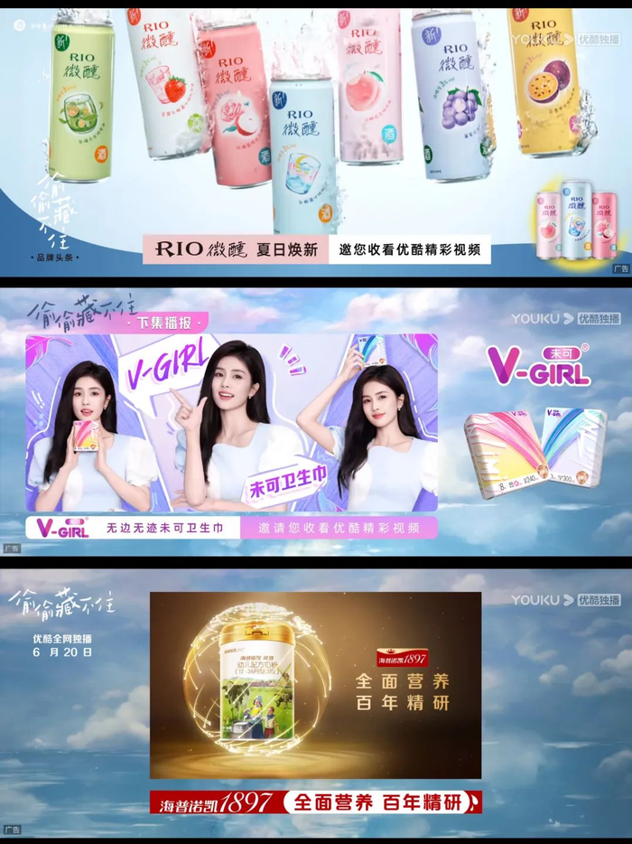 但从这几部剧的情况来看,排它情况已然弱化,不论哪一部剧,都没有此前一冠到底的情况了。每一集或者每两三集的品牌合作都在发生变化。像《长风渡》就在不同的集数开头出现三款手机品牌,还有《偷偷藏不住》中,不同的奶粉品牌。