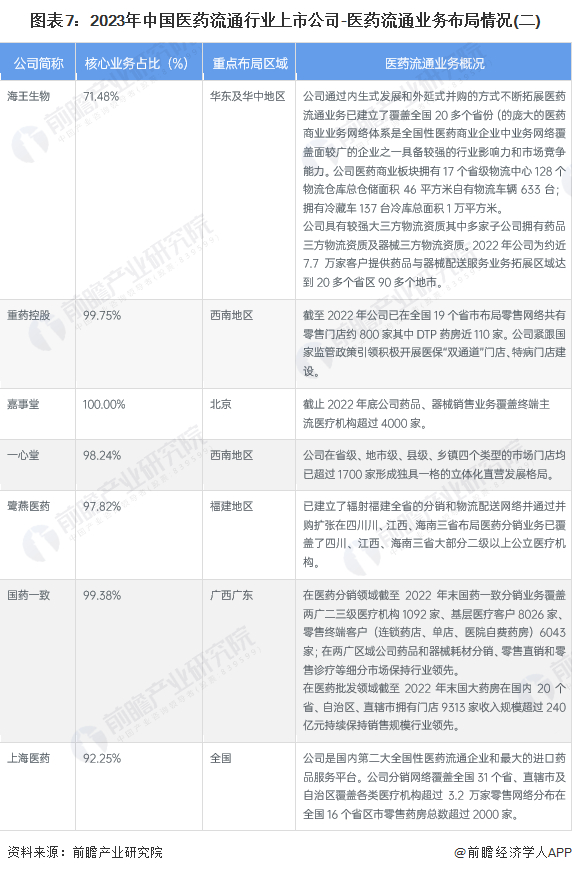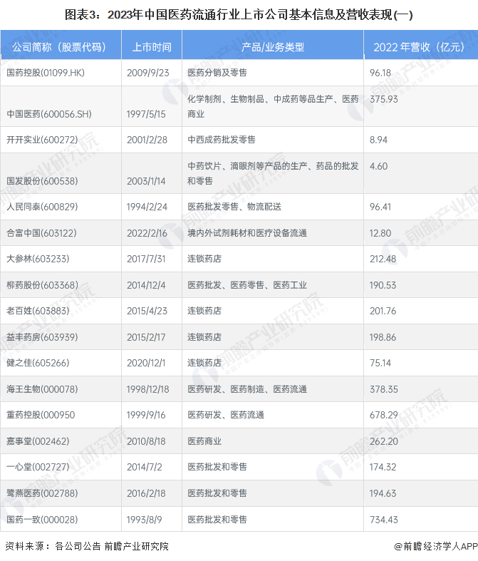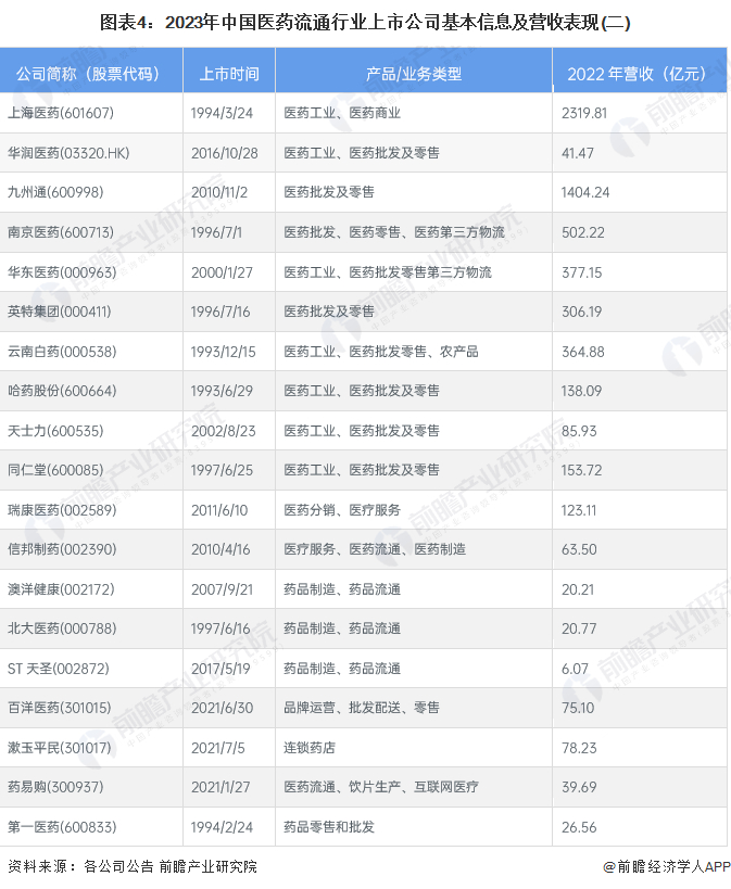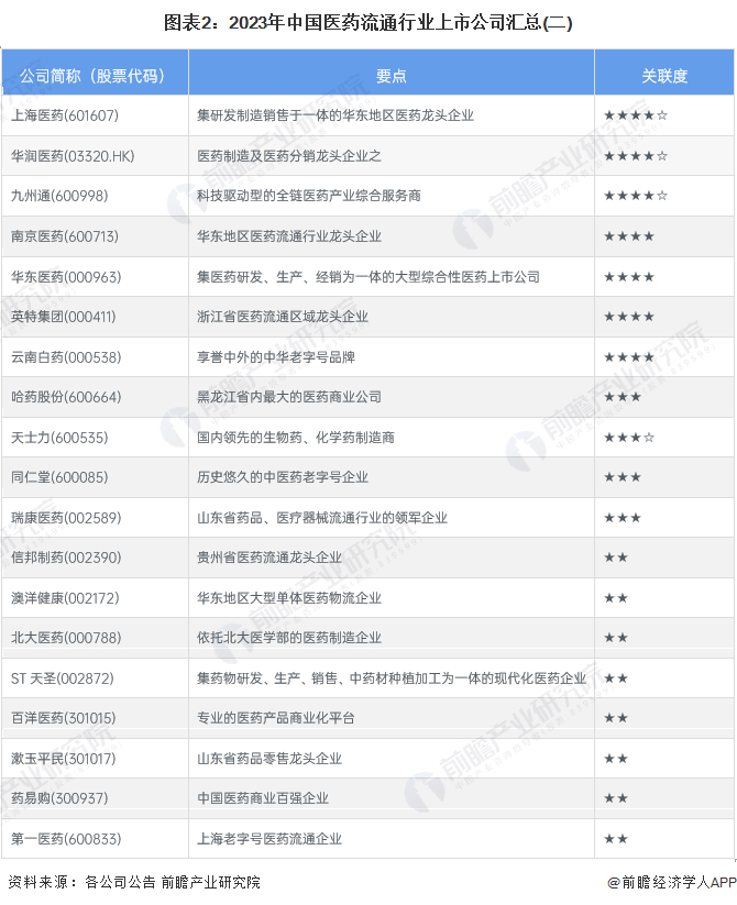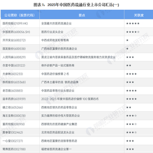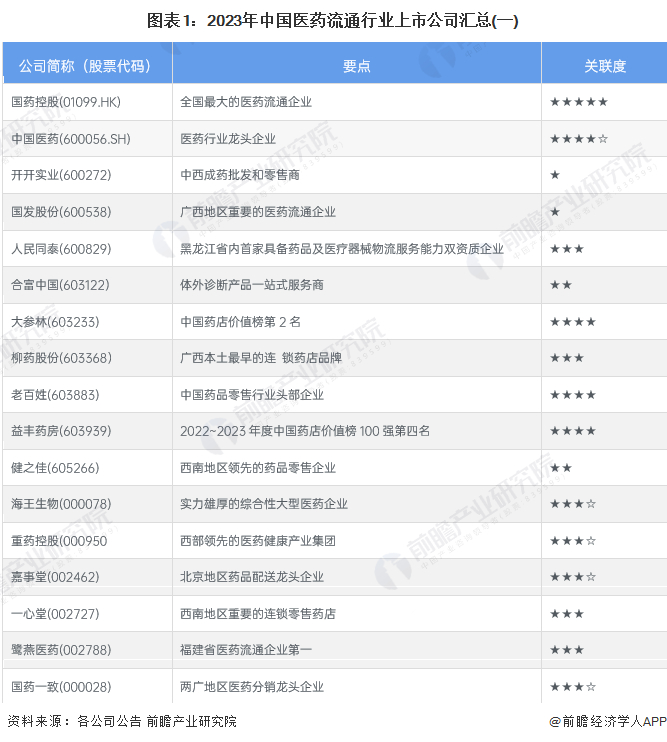 1、医药流通行业上市公司汇总