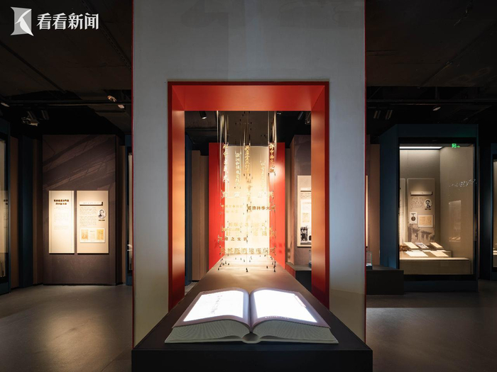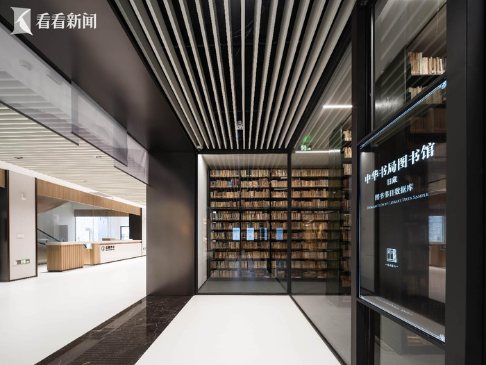 一楼用透明书库展示的17万册藏书使用原图书分类法和原书架,复原上架中华书局旧藏。这些藏书中,既有《新青年》等红色文献,又有康有为藏清雍正四年铜活字《古今图书集成》影印底本近800册。书库外有多媒体数字屏可供参观者查询书目。