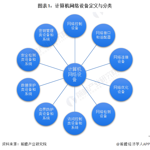 计算机网络设备是指构建整个网络所需的各种数据传输、交换及路由设备,主要包括交换机、路由器、无线接入点和光缆等,其细分市场众多。网络设备是新型基础设施建设的重要组成部分,作为硬件基础设施体系对大数据、人工智能、工业互联网等领域的上层应用进行支撑。