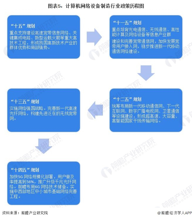 计算机网络设备制造行业是我国电子信息产业领域的重点行业。近年来,我国计算机网络设备制造行业政策不断丰富,政策体系的不断完善推动行业规范化发展,进而提升行业整体的竞争力,引导行业内企业持续健康发展。计算机网络设备制造行业政策发展历程如下: