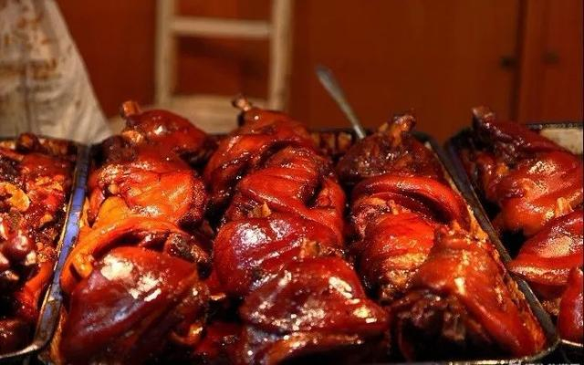 万三蹄是昆山的一道传统名菜,属于苏菜,该菜品起源于明代沈万三家, 是用来招待贵宾的必备菜肴。
