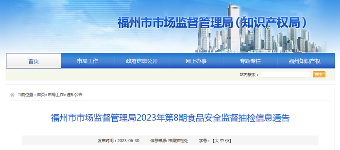 中国质量新闻网讯 2023年6月30日,福州市市场监督管理局网站发布2023年第8期食品安全监督抽检信息通告。