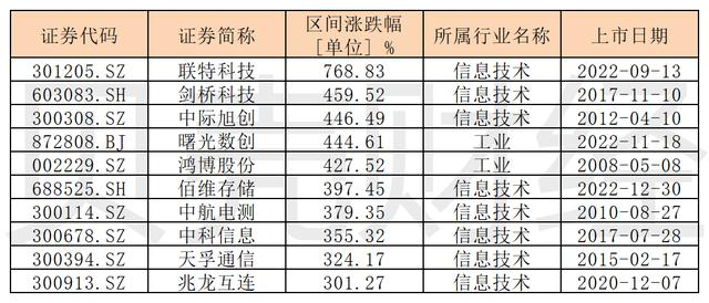 百只个股涨超100%,联特科技成大赢家