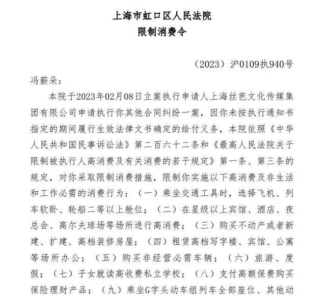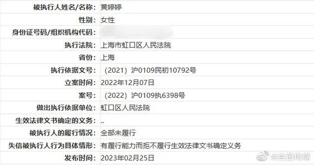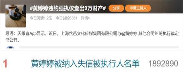2月28日,丝芭传媒发文称因黄婷婷有履行能力而拒不履行生效法律文书确定义务,被法院纳入失信被执行人名单,并采取限制高消费令措施。