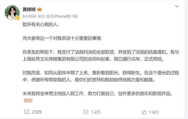 付清350万解约金黄婷婷:重新看到阳光、获得新生