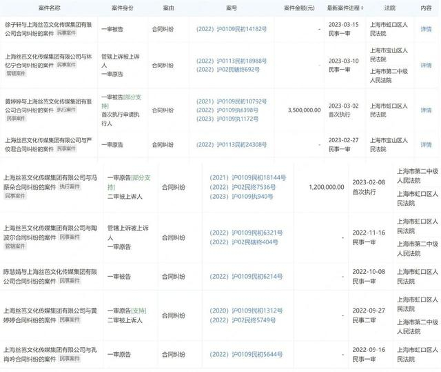 企查查资料显示,丝芭传媒名下涉及大量合同纠纷官司,原告被告都有。