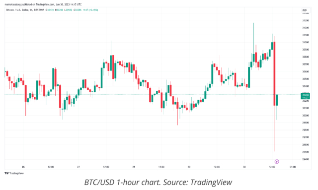 该负面消息一度令比特币短线跳水6%并短线失守3万美元整数位心理关口,随后价格反弹并重回3万美元上方,因为报道透露,SEC表示资产管理公司可以更改申请措辞并重新提交。