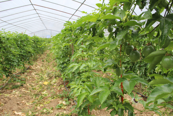 大棚内,嫩绿的百香果藤蔓爬上近2米高的铁丝网,硕果累累。“百香果长势很好,这里的气候特别适合种植百香果,现在即将成熟上市,预计采摘期可持续到明年3月。”余三强对记者说。