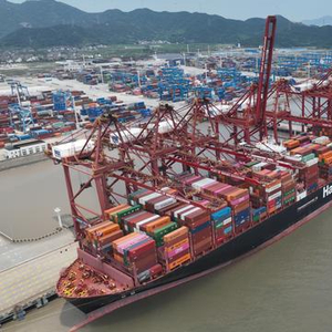 “俗话说港口是经济的晴雨表。宁波舟山港在促进区域经济发展、支撑产业链供应链安全稳定、畅通国内国际双循环方面,具有举足轻重的作用。”宁波市副市长李关定告诉记者,今年1-5月,宁波舟山港完成货物吞吐量5.62亿吨,集装箱吞吐量1447万标箱,实现稳中有增。今年以来,宁波对东盟、中东、俄罗斯、拉美等新兴市场进出口逆势大幅增长。太阳能电池、电动汽车、锂电池等“新三样”出口分别增长33%、96%和39%。