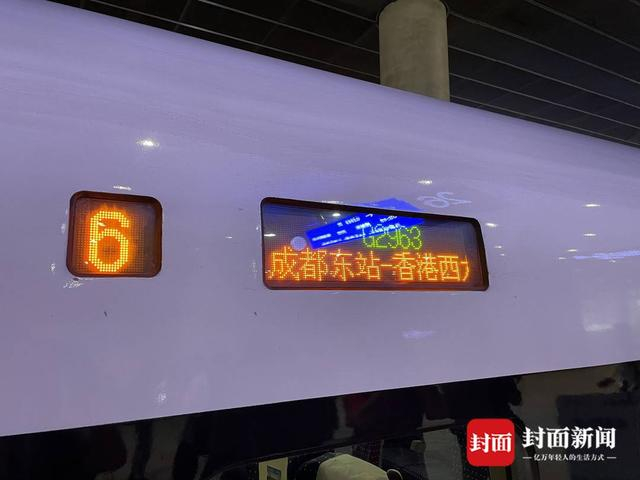 7月1日上午8点48分,成都东至香港西九龙G2963次列车驶离站台,从成都东站发车。首发蓉港直达高铁正式开行,该次列车全程10小时07分,途经乐山、宜宾西、贵阳东、桂林西、肇庆东、三水南、佛山西、广州南、虎门、深圳北,将于当日18点55分抵达香港西九龙站。