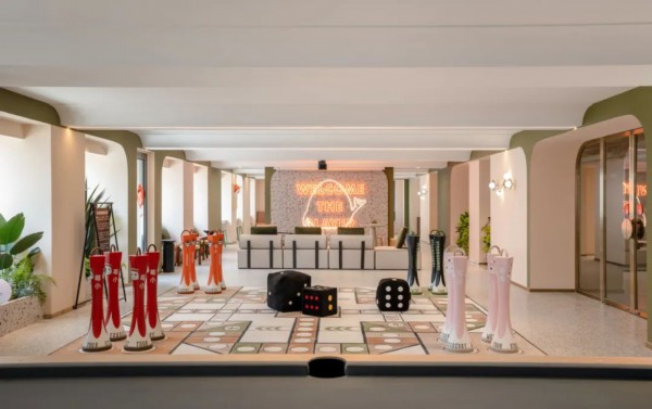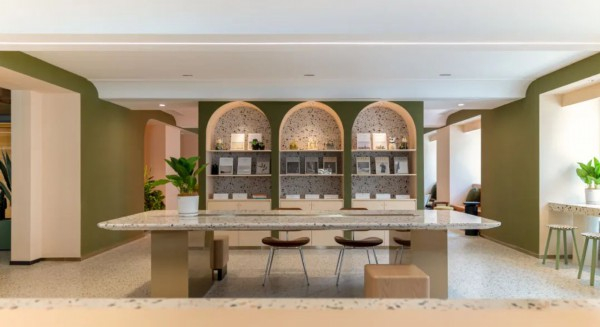 公区设计方面,金闼店有390平方米的超大共享空间,空间设计中以拱装饰元素作为整体设计语言,打造更加舒适的竖向空间尺度,轻松活力的色彩提升空间温度,消磨边界感。