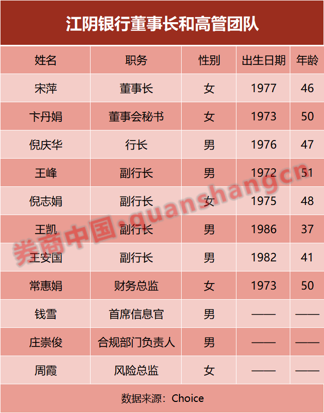 梳理江阴银行新一届领导班子的简历可以发现,此次履新的高管多为“70后”。