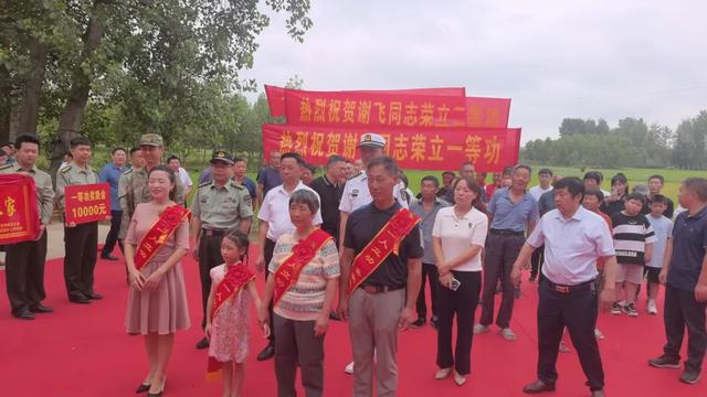 送到一等功臣谢飞家中