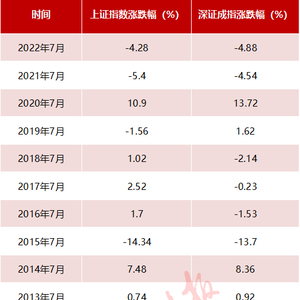 记者观察发现,7月无论是上证指数还是深证成指均能实现正的平均收益,主要因为7月容易出现一波“走牛”行情。例如,2007年7月、2009年7月、2010年7月、2014年7月、2020年7月,指数表现明显更强。