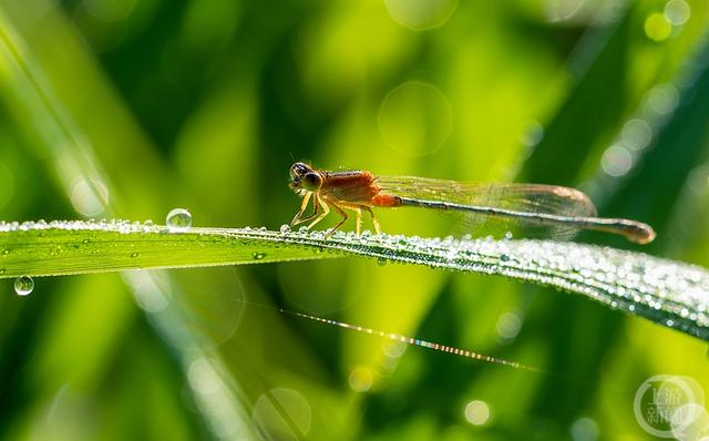 豆娘,身材纤弱细长,体态优美、颜色五彩缤纷,有红色、蓝色、橙色、黑色等。