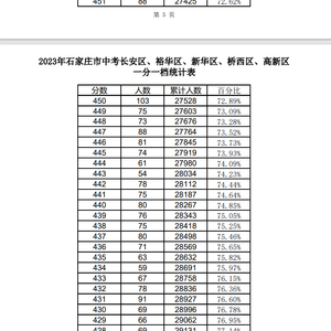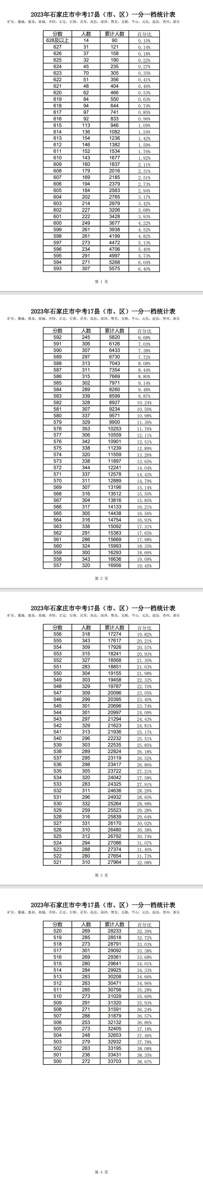 石家庄市中考2023年(含优惠)一分一档统计表(市)