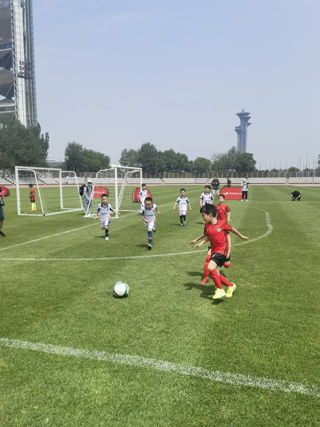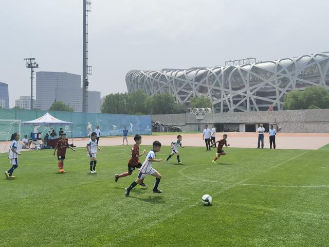 活动正式启动后,数十名小球员走进鸟巢附场,开始一场对抗赛。4块小球场上,小球员们顶着似火的骄阳奋力奔跑。带球、传球、突破……他们丝毫不受天气影响,全身心投入足球中,享受足球的快乐。当场上出现进球时,一旁观赛的家长送上掌声加油声。