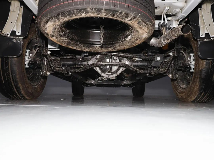实拍车辆的前双叉臂式,后悬架为多连杆式非独立悬架结构,会更加兼顾行驶的舒适性一些,并且采用的是非承载式车身结构,在皮卡中也是比较常见的悬架和底盘结构了。