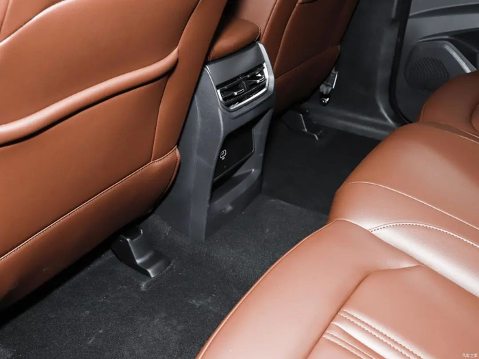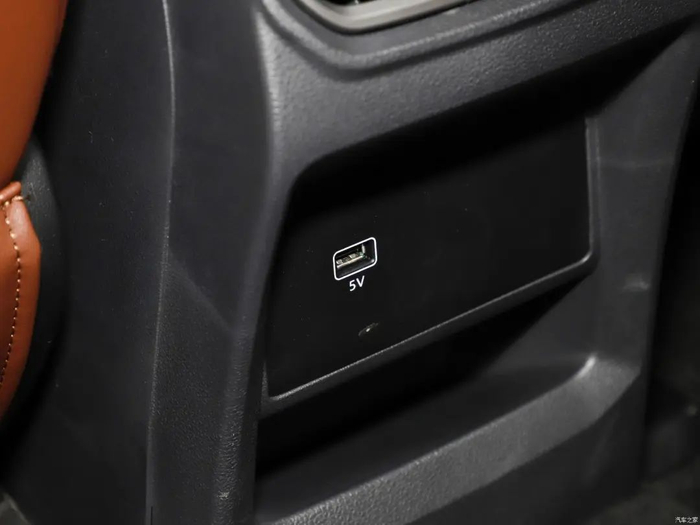 后排座椅目测内部填充是比较厚实的,它并不支持靠背的分体式向前放平,前方配备有空调出风口和一个5V的USB充电口,配置同级平均水平吧。