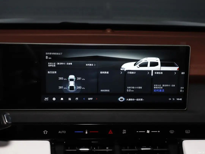 其实相比外观的黑化,内饰则主打科技感,比之前的T90系列车型的变化还是非常大的,主要的方向就是变得更有科技感了,这也是当前皮卡设计的大趋势。