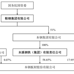 据悉,本钢板材的控股股东为本溪钢铁(集团)有限责任公司(下称本溪钢铁),持股比例58.65%,另本钢集团有限公司(下称本钢集团)还持股17.95%,而本溪钢铁为本钢集团的全资子公司,二者为一致行动人。鞍钢集团通过本钢集团、本溪钢铁和鞍钢集团资本控股有限公司合计控制上市公司76.67%股权,为上市公司实际控制人。