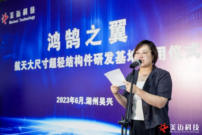 本次活动在位于湖州市吴兴区织里镇的美迈科技新厂区举行。活动现场,湖州吴兴人才产业集团副总经理屠涓女士对美迈科技落地湖州表示祝贺,并在发言中提到,美迈科技作为此次“以投代招”模式成功引进到吴兴区的创新创业项目,非常符合吴兴区对于高人才、高科技、高质量的项目要求。屠总表示:“此次全新的生产基地正式落成,代表着美迈科技对我区营商环境的充分肯定。”同时,她非常期待以美迈科技为起点,聚焦航空航天的精密制造产业链能在吴兴区持续延展,从而促进全区产业转型升级。