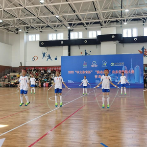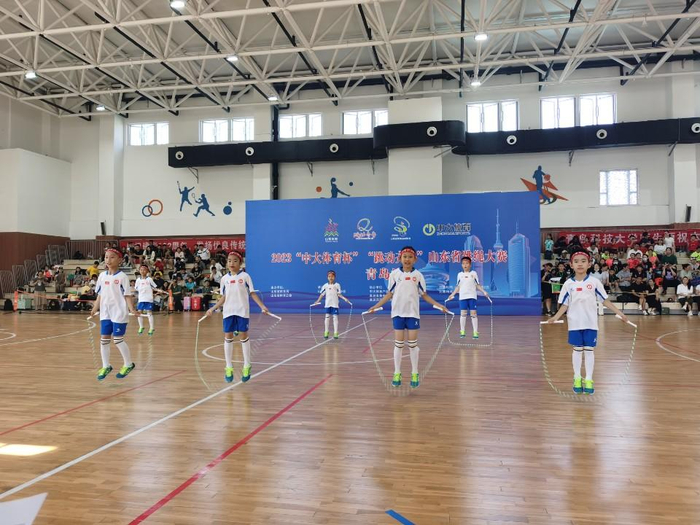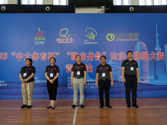 为认真贯彻落实全民健身和健康中国国家战略,积极推动我省跳绳项目普及与推广,创新打造跳绳精品赛事,进一步提高广大群众健康水平和生活质量,助力体育强省和经济社会发展,响应“健康、青春、绿色、活力”的跳绳运动理念,提高青少年群体的体质水平,增强我省人民群众的身心健康水平与锻炼能力,6月30日至7月2日,由山东省体育局、山东省体育总会主办,山东跳绳运动协会承办,中大体育产业集团股份有限公司、青岛市黄岛区海西青少年足球俱乐部和青岛西海岸新区第二实验小学协办的2023年“中大体育杯”“跳动齐鲁”山东省跳绳大赛(青岛站)在青岛西海岸新区第二实验小学体育馆拉开帷幕。