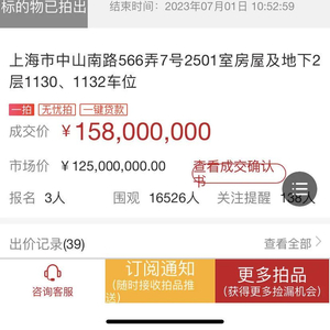 1.25亿起拍,39轮激烈报价!上海知名豪宅1.58亿成交,单价超34万!竞买人是百亿富豪?