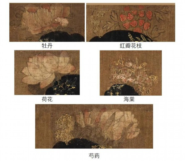 牡丹、红瓣花枝、荷花、海棠、芍药