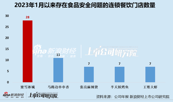 近日,北京市消费者协会通报了最新一期(5月31日-6月15日)全市食品安全大检查结果,其中蜜雪冰城的连锁餐饮门店因存在食品安全问题被点名3次,数量最多。今年以来,北京市内的蜜雪冰城门店已有28次因存在食安问题被通报,违规被通报量居于首位,且远高于第二位,即被点名11次的马路边边串串香。