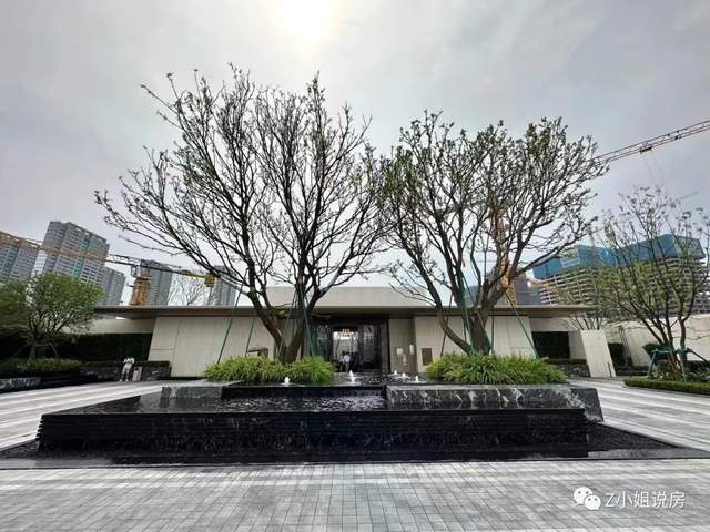 进入小区内部,院落的中央水景当中,是两棵价值30多万的朴树,据置业顾问表示,这是设计师跑了广东、湖南、安徽、江苏、甘肃五个省才最终选定的。