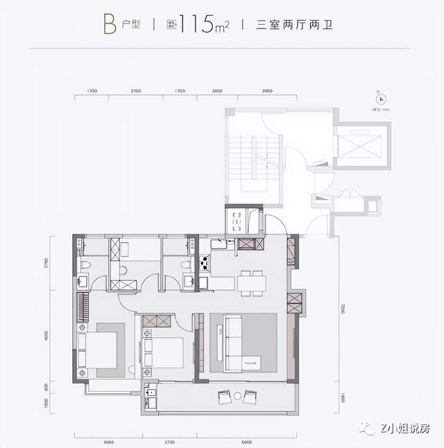 建面约115㎡三室两厅两卫↓↓