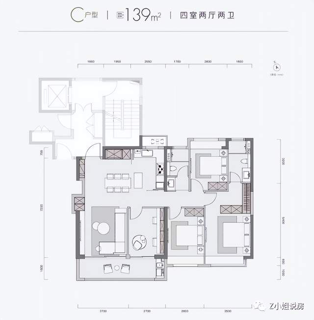 建面约139㎡四室两厅两卫↓↓