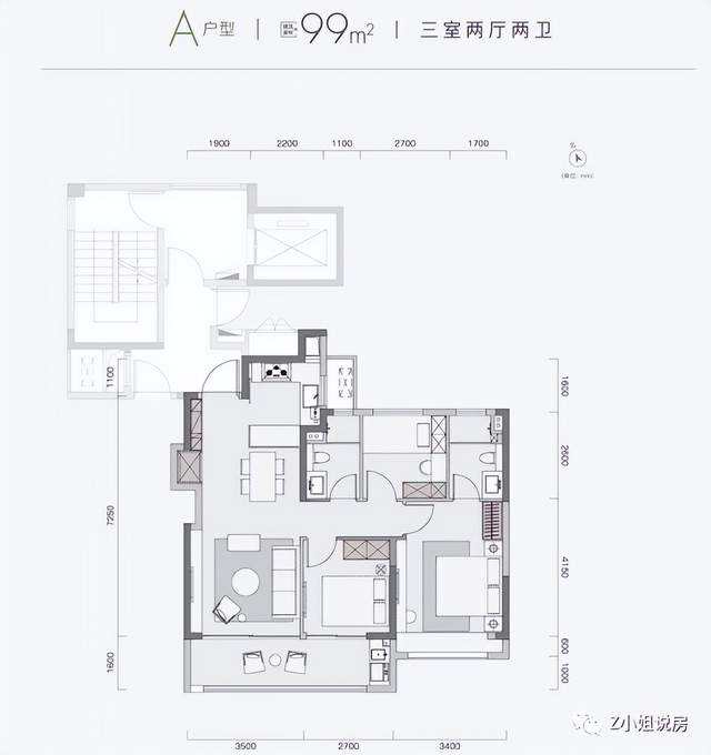 小行的朗拾二期部分户型用的是S墙设计,部分双阳台,万科朗拾|雨核的三个户型,均采用了这两种设计。