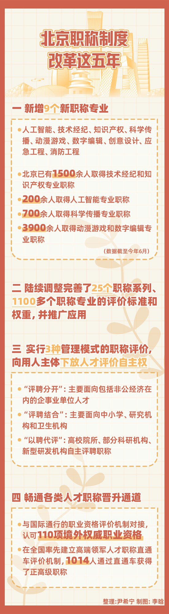 今年6月,北京市人力资源和社会保障局发布消息称,北京市已经陆续出台了高等学校教师、工程技术、经济、新闻等25个职称系列改革实施办法,用5年的时间构建起了全新的职称制度体系,有“破”有“立”,畅通了各类人才的职称通道。