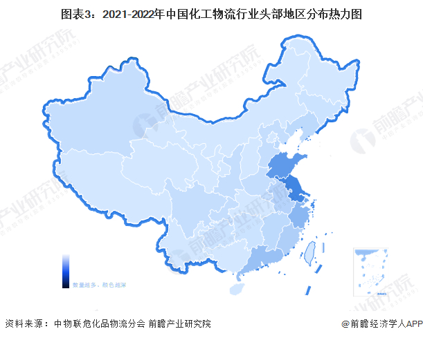 石化物流产业链区域热力地图:华东分布最集中