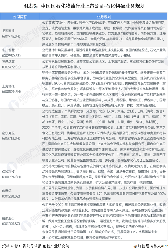 石化物流行业上市公司业务规划