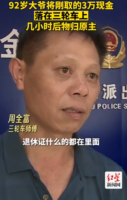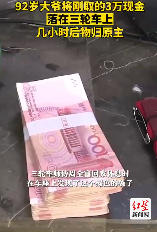 红星新闻网 (记者 付晓桐)7月4日报道 6月26日,三轮车师傅周全富给车充电时发现,一个袋子装着3万元现金。