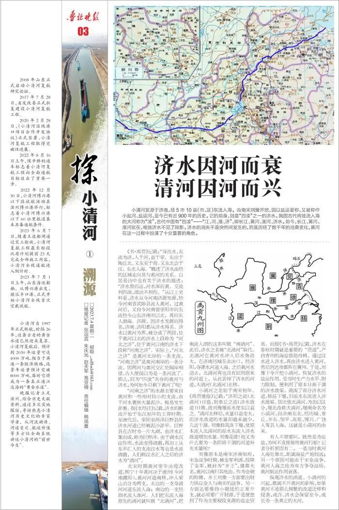 晚报记者立足滨州,结合历史文献资料,通过多次实地探访,寻访熟悉小清河历史文化的专家学者,从河流溯源、河道变迁、航运价值等多方位全面系统讲述小清河的“前世今生”。