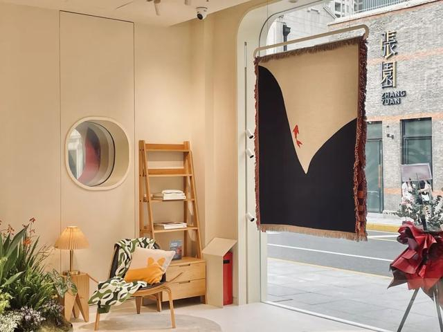 首家线下门店包括了上下两层,设计基调采用鲜艳明快的色彩风格,打造为时下流行出片的“多巴胺”风格。一楼为策展式空间,其中颇为吸睛的旋转楼梯采用了大面积的红白撞色,成为一处拍照打卡点。产品方面,围绕着营造家居生活氛围这一主题,店内主要陈列着各式设计的家居创意氛围毯,同时售卖抱枕、香氛等延伸品类。