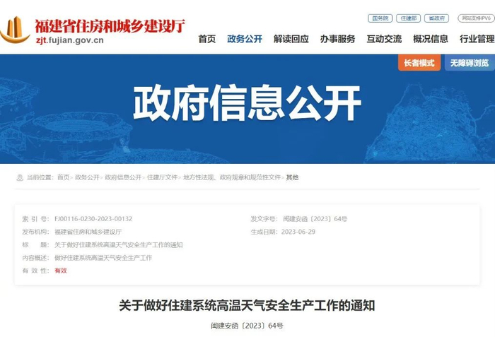 日前,省住建厅向各设区市的住建、园林、城管等住建系统相关部门下发通知,要求切实做好住建系统高温天气安全生产工作。
